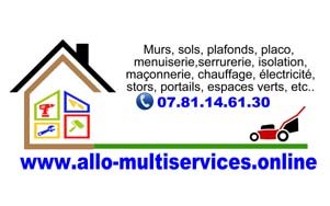 Pourquoi faire appel à plusieurs artisans pour vos travaux ? Nous sommes une entreprise d'agens d'entretient du bâtiment dîplomé (AEB). Nous pouvons réaliser vos travaux de A à Z sans limite de temps. Plomberie, électricité, murs, sols, plafonds, cuisine, salle de bain, chauffage, isolation, portails, fenêtres, volets, stores, maçonnerie, etc.. Espaces verts : Tonte, taille, évacuation des déchets, etc.. La réalisation de votre chantier par notre entreprise, vous fait gagner tu temps et de l'argent. Que ce soit dans le neuf ou la rénovation. Nous avons plusieurs années d'expériences dans ces domaines. Vous trouverez sur notre site internet nos partenaires avec lesquels vous pourez trouver des idées originales de décoration. Ainsi que différents matériaux et materiels que nous pourons installer. Vous trouverez également chez notre partenaire téréva des pièces détachés pour les marques suivantes que nous pouvons fournir (envoi possible par laposte, transporteur, relay etc..) : Atlantic, Atlantic Guillot, Auer, Chappee, De Dietrich, Delabie, Edilkamin, ELM Leblanc, Ferroli, Frisquet, Geberit, Grohe, Idéal Standard, MB Expert, Nicoll, Porcher, Presto, Riello, Saunier Duval, Siamp, Thermor, Watts. Un commercial viendra vous rendre visite, afin d'étudier le chantier, vous donner d'éventuels conseils et établir un devis par la suite. Comme vous l'avez compris, allo-multiservice.online n'est pas une entreprises comme les autres. Elle sait faire la différence. En espérant vous rencontrer prochainement. Merci. A bientôt.